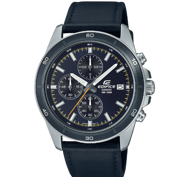 Đồng hồ bấm giờ EDIFICE cổ điển cỡ trung có sự kết hợp táo bạo giữa các chi tiết và thiết kế tinh xảo là sản phẩm sinh ra để dành cho bạn. Dây đeo bằng da thật kết hợp với mặt số màu xám đậm, lấy cảm hứng từ phong cách lái xe thành thị sành điệu.