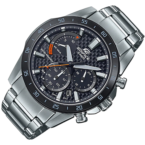 Các tính năng Đồng hồ ghi thời gian chạy bằng năng lượng mặt trời mới này có mặt số sợi carbon tượng trưng cho chủ đề đua xe thể thao của dòng sản phẩm EDIFICE. Màu sắc dễ nhìn của kim giây là kết quả của phản hồi từ các kỹ sư đua xe. Công nghệ năng lượng mặt trời phân tán và che chắn ánh sáng nguyên bản của CASIO giúp bạn có thể tạo ra đủ năng lượng chỉ bằng cách sử dụng ánh sáng đi qua ba mặt số nhỏ. Pin được sạc đầy bằng cách tiếp xúc với ánh sáng cung cấp năng lượng cho các hoạt động thông thường trong năm tháng.