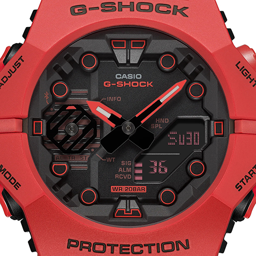 Xin giới thiệu mẫu GA-B001 thuộc dòng đồng hồ G-SHOCK với thiết kế mới thiên về độ bền, có chức năng Kết nối điện thoại thông minh, kết hợp nhiều màu sắc mạnh mẽ đưa bạn ra khỏi các con phố thành thị sành điệu. Không chỉ nổi bật về tính thời trang mà các mẫu đồng hồ này còn trang bị đầy đủ chức năng. Đồng bộ hóa với điện thoại thông minh của bạn qua Bluetooth và nhấn vào ứng dụng chuyên dụng để truy cập các chức năng bạn cần. Dòng đồng hồ GA-B001 có kết cấu sáng tạo với hai bộ phận đường gờ trên và dưới riêng biệt kết nối ở vị trí 9 và 3 giờ. Thiết kế khéo léo này càng trở nên nổi bật hơn nhờ sự chú ý tỉ mỉ đến từng chi tiết, với các vạch chỉ giờ và màn hình LCD có hình dạng độc đáo được thiết kế lần đầu tiên cho dòng G-SHOCK. Chọn trong số các màu trong mờ bao gồm màu đen tuyền, đen hoặc ngọc lam hoặc màu đỏ mới được thêm vào.