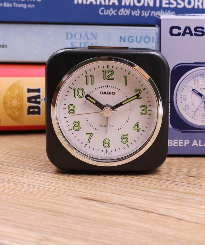 Đồng hồ báo thức du lịch - để bàn TQ-140-1DF có thiết kế đơn giản thanh lịch và nhỏ gọn hiện thị đầy đủ tính năng xem giờ, báo thức có dạ quang trên mặt