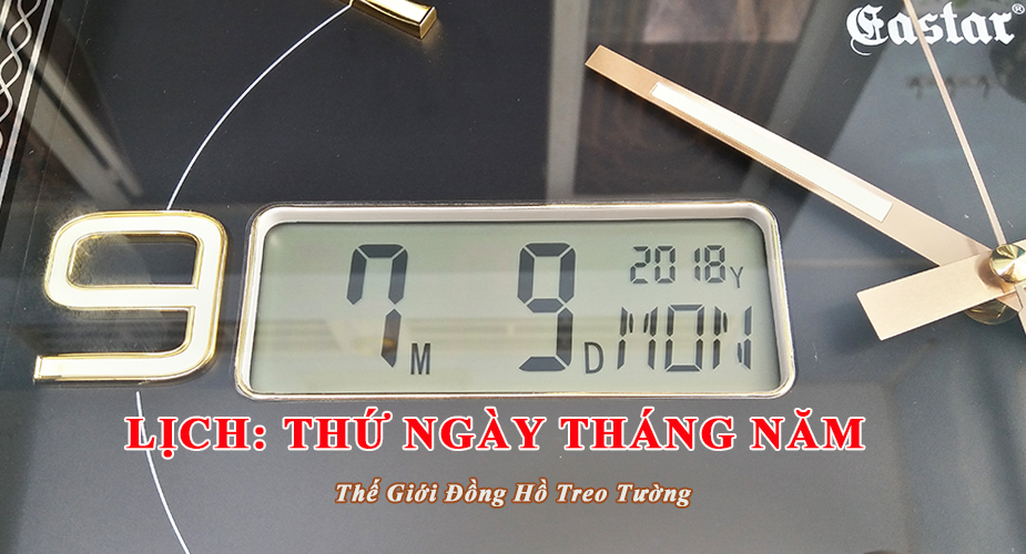 (**)Thông tin hiển thị trên màn hình Lịch điện tử (bên trái): Tháng, Ngày, Thứ, Năm. Lịch Vạn niên điện tử tự động: Từ ngày 1/1/2000 đến ngày 31/12/2099.