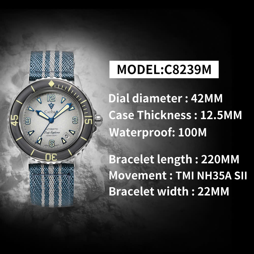 ✨Đồng Hồ Nam Cadisen C8239M3 Chính Hãng Full Box Chống Nước Kính Chống Xước Dây Vải BH 2 Năm Máy Cơ