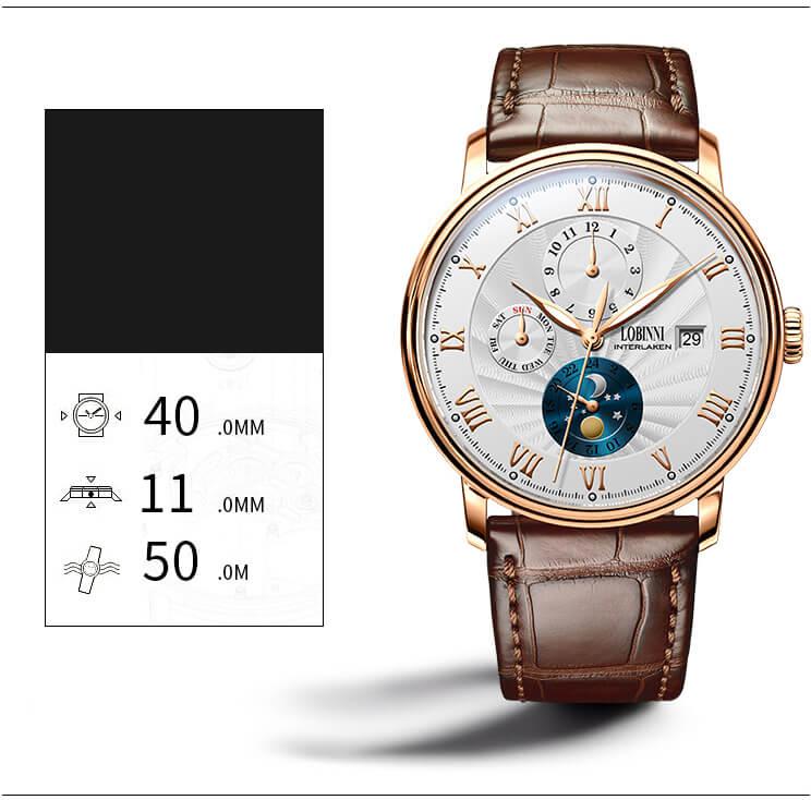 ️ Mặt kim phủ DẠ QUANG : Phiên bản đặc biệt LOBINNI No.1023LT-7 được cải tiến thêm thiết kế mặt kim dạ quang giúp chủ nhân có thể xem giờ dễ dàng trong điều kiện ánh sáng thấp