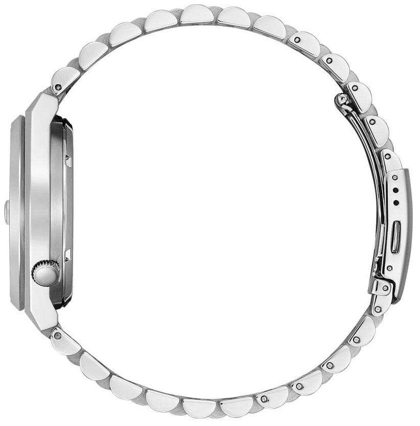 Đặc điểm kỹ thuật - - Vật liệu vỏ / gờ: Mạ ion - Chốt gập 3 chỉ với một lần bấm - Dây đeo bằng thép không gỉ - Mặt kính khoáng - Khả