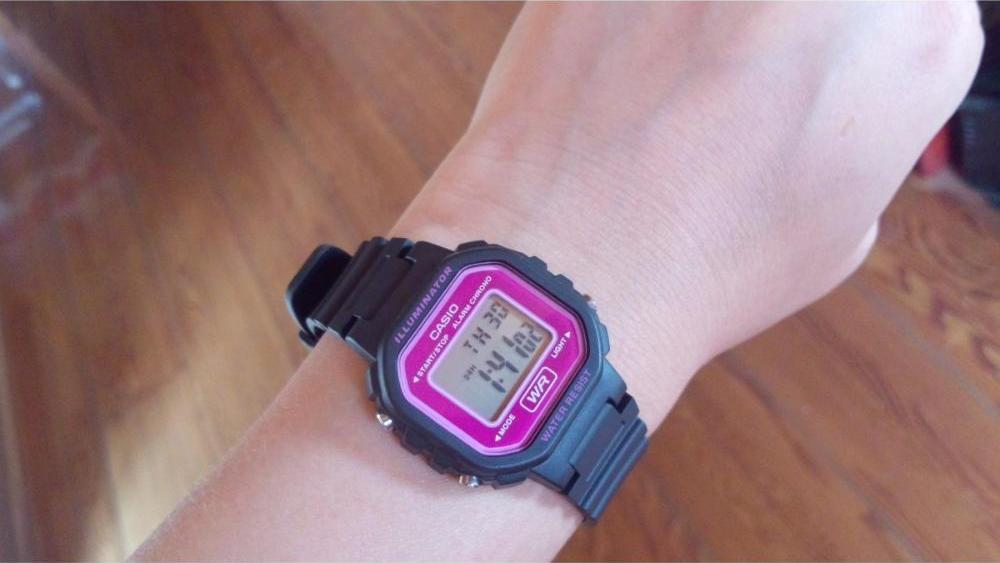 Đồng Hồ Nữ Casio LA-20WH-4A1DF dây nhựa màu hồng kết hợp mặt vuông cá tính tuổi thọ pin tới 5 năm.
