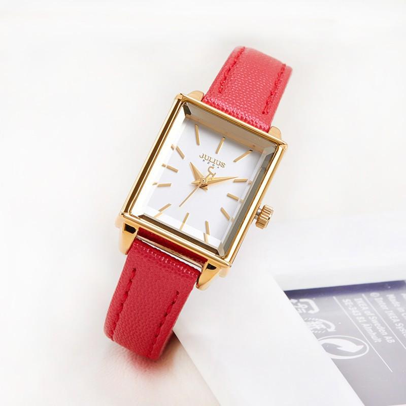 THÔNG SỐ SẢN PHẨM Thương hiệu: JULIUS Hàn Quốc Mã sản phẩm: JA-1096C (Đỏ) Dành cho: Nữ giới, yêu thích thời trang và phá cá Chất liệu dây: Dây da Genuine Leather bền bỉ Chất liệu mặt kính: Mặt kính