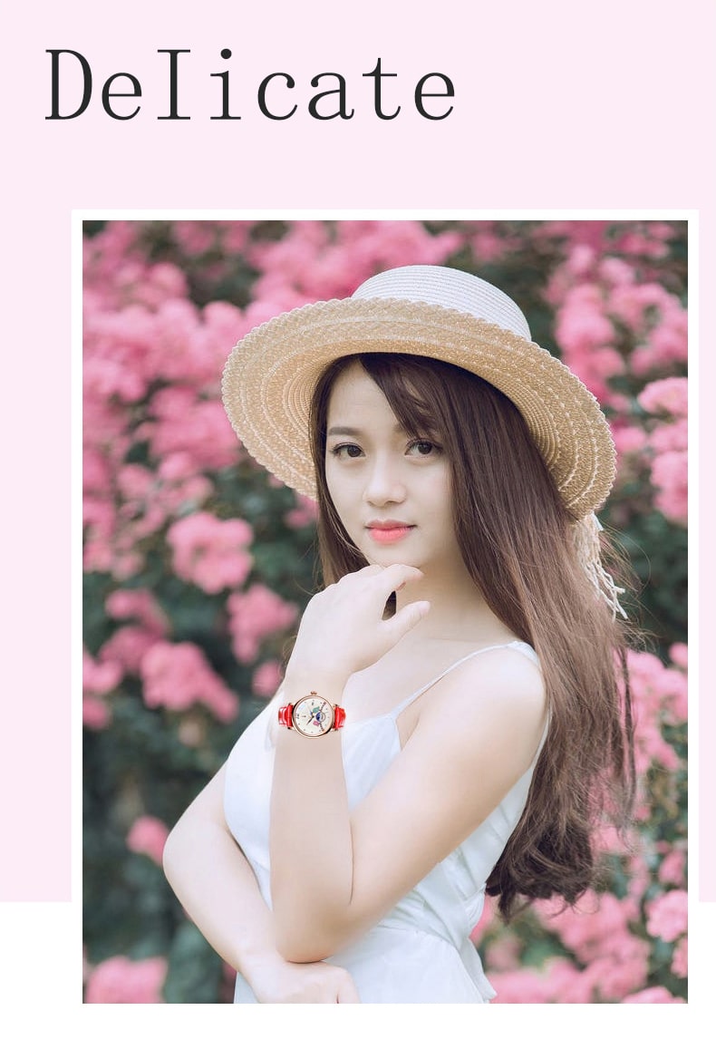 THÔNG SỐ SẢN PHẨM: Mã sản phẩm : K991-1 Giới tính : Nữ Kiểu máy : Automatic (Máy Cơ) Đường kính mặt : 35 mm Độ dày: 9 mm Chất liệu vỏ : Thép không