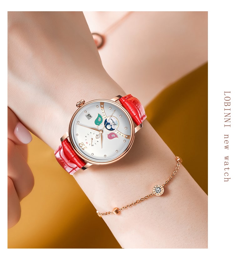 Đồng hồ nữ chính hãng Lobinni Thụy Sỹ Thiết kế hiện đại,sang trọng dành cho phái nữ Thời gian trữ cót lâu lên đến 40h Chống nước 5ATM, Kính sapphire Toàn bộ máy được làm