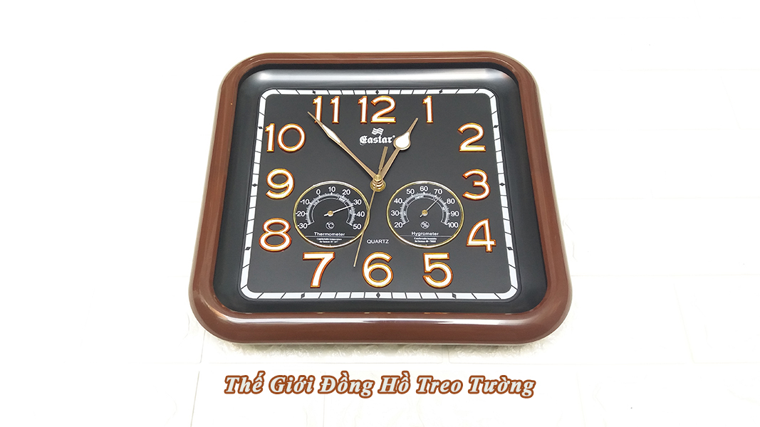 ✨Đồng Hồ Treo Tường Cao Cấp KIM TRÔI EASTAR SỐ NỔI 3D có DẠ QUANG và NHIỆT ẨM KẾ CƠ (Không Dùng Pin) - Hình Vuông Mặt Đen - Tặng Pin AA - Bảo Hành 1 Năm