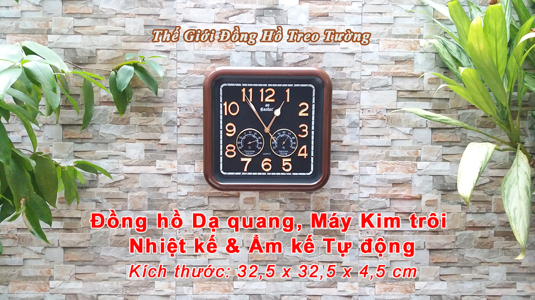 1. ĐẶC ĐIỂM NỔI BẬT: - Đồng hồ Treo tường Cao Cấp EASTAR Kim Trôi Nhật có Dạ quang (*), mặt vuông vát góc, kích thước 34,5 x 34, dày 5 cm. - Kiểu