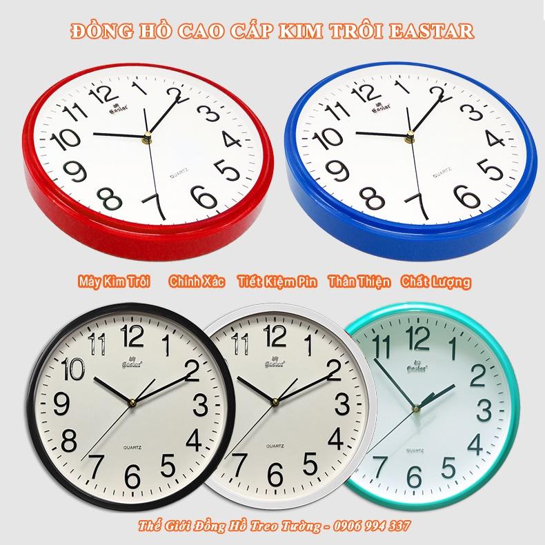✨Đồng Hồ Treo Tường EASTAR Cao Cấp Tròn – Số Dập Nổi Máy KIM TRÔI – Bảo Hành 2 Năm – Tặng Pin Maxell