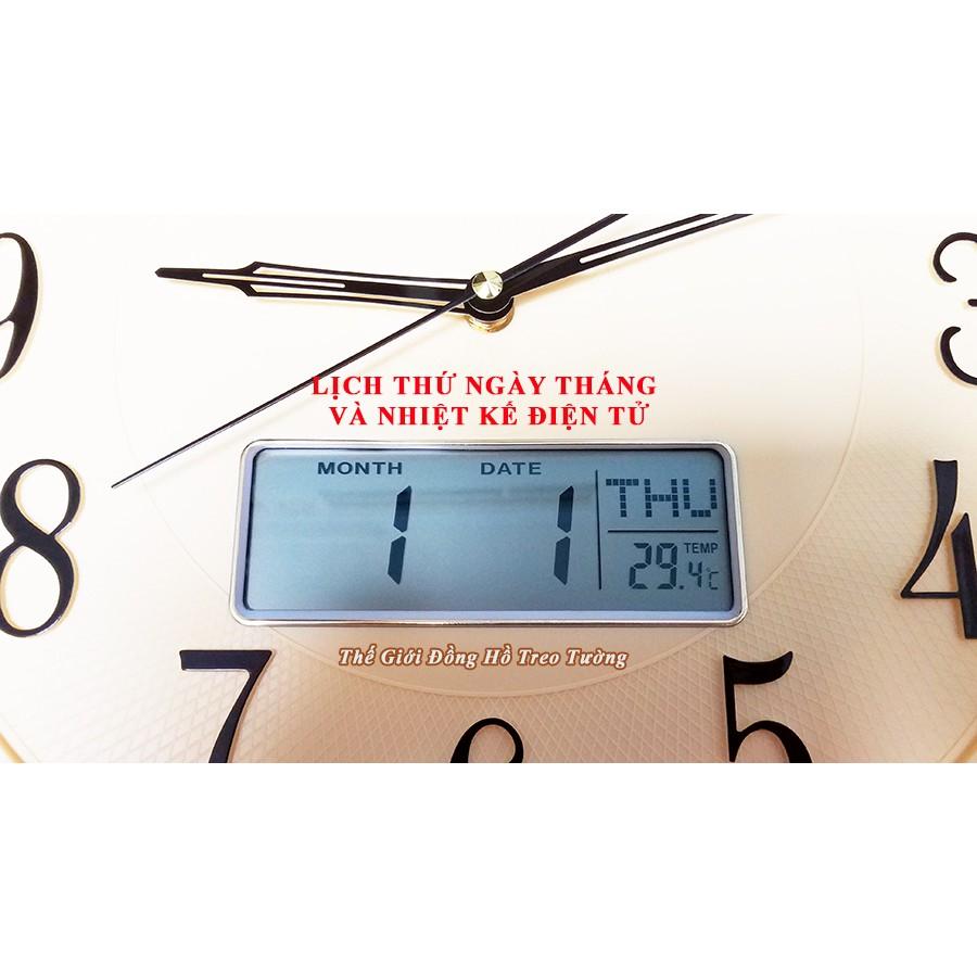 ✨Đồng Hồ Treo Tường EASTAR Tròn Kim Điện tử - Máy KIM TRÔI - LỊCH Vạn Niên và NHIỆT KẾ Điện tử - Mặt Vàng – Bảo Hành 1 Nă