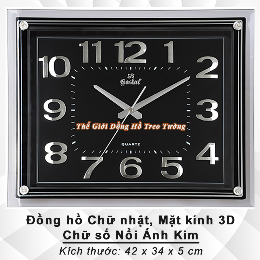 ✨Đồng Hồ Treo Tường KIM TRÔI EASTAR Cao Cấp Mặt Chữ Nhật Ánh Kim – Mặt Kính 3D Tràn Viền – Bộ Số Nổi 3D