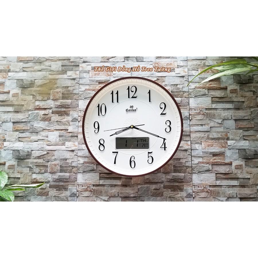 Đồng Hồ Treo Tường EASTAR 5123 - Kim Trôi - Lịch Vạn Niên Điện Tử - Kích Thước 38cm