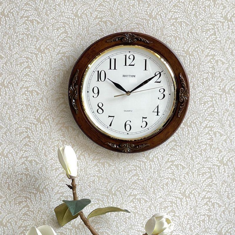 Mua tại TiktokĐồng hồ treo tường Nhật Bản Rhythm, sử dụng 1 pin (AA), vỏ gỗ màu nâu cẩn hoa văn sang trọng. Kích thước 30.0 x 4.0cm, trọng lượng 795g Máy cực êm không phát tiếng kêu gây khó chịu. chính xác, bền bỉ. Kính mo với viền xi mạ vàng sáng bóng, thích hợp cho gia đình , sảnh khác sạn.