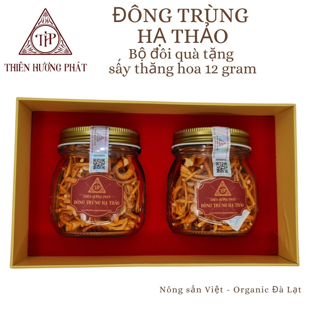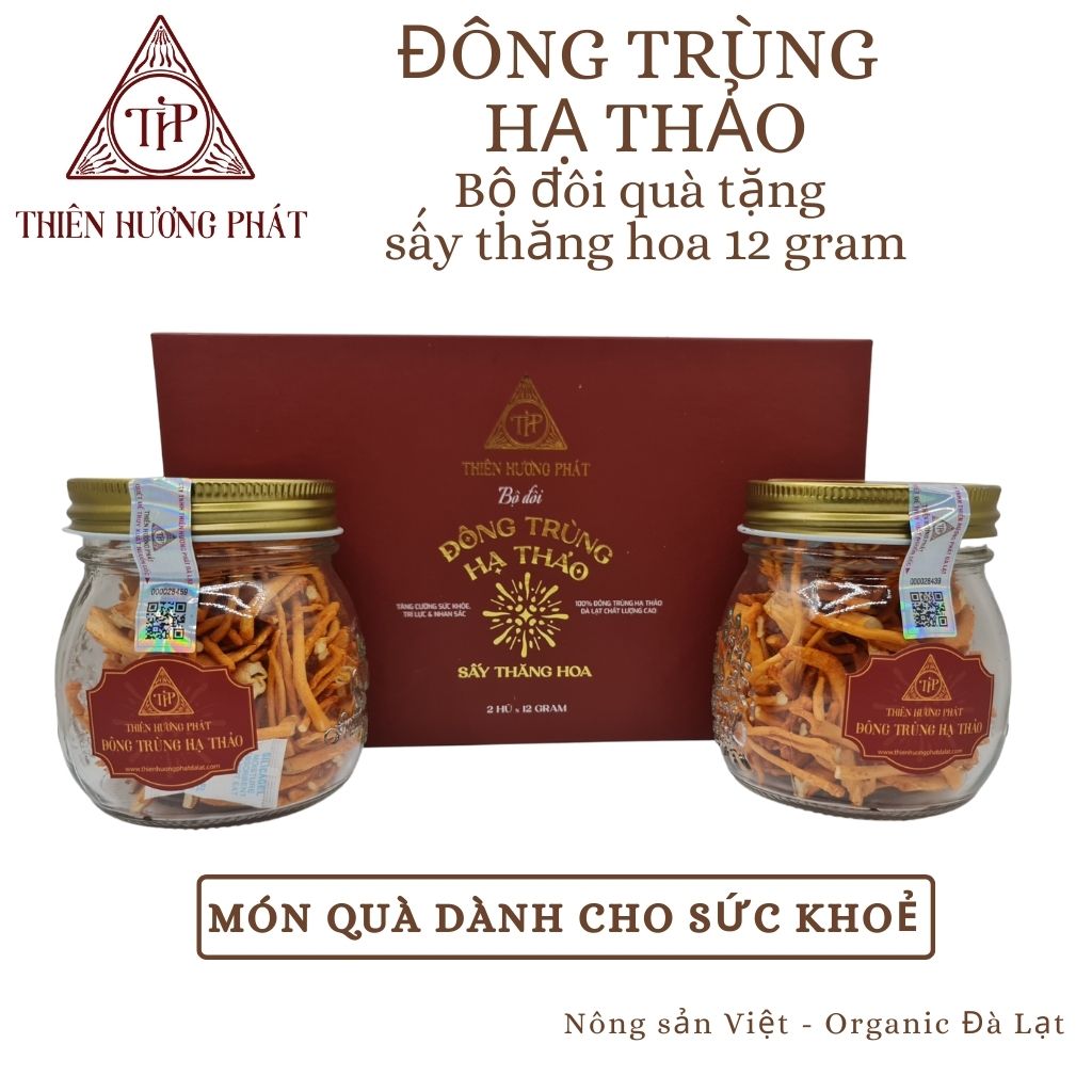 Bộ đôi quà tặng cao cấp - Nấm Đông Trùng Hạ Thảo - Sấy Thăng Hoa - Thiên Hương Phát Đà Lạt - 2 hủ 12 gram.