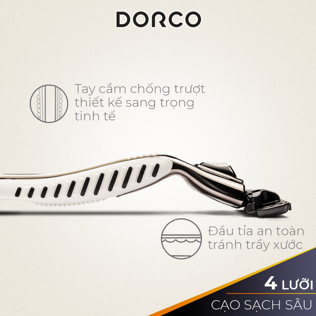 Bộ Dao Cạo Râu 4 Lưỡi Dorco Pace 4 có 1 Cán và 9 Đầu Cạo Làm Quà Tặng sở hữu thiết kế tinh tế với phần đầu lưỡi dao có cấu trúc mở, cho bạn dễ dàng vệ sinh một cách dễ dàng. Phần cán dao và khớp nối giữa đầu dao được thiết kế tinh xảo với cấu trúc động, dễ dàng trượt theo hình khuôn mặt giúp cạo sạch râu trên vùng khuôn mặt và cả phần chân râu mà không gây tổn hại đến da.