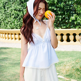 Áo 2 Dây với hàng cúc bọc tạo điểm nhấn trẻ trung, nữ tính. Áo có thể phối theo nhiều phong cách, với quần sóc hay quần tây cá tính, hoặc với chân váy xoè