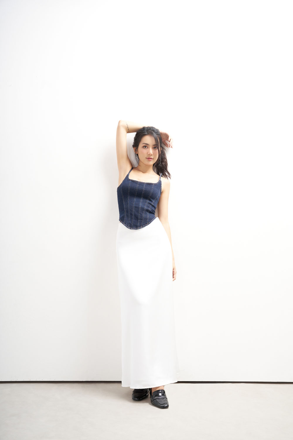 ✨DOTTIE - Chân váy maxi vải satin - Trắng - S0168