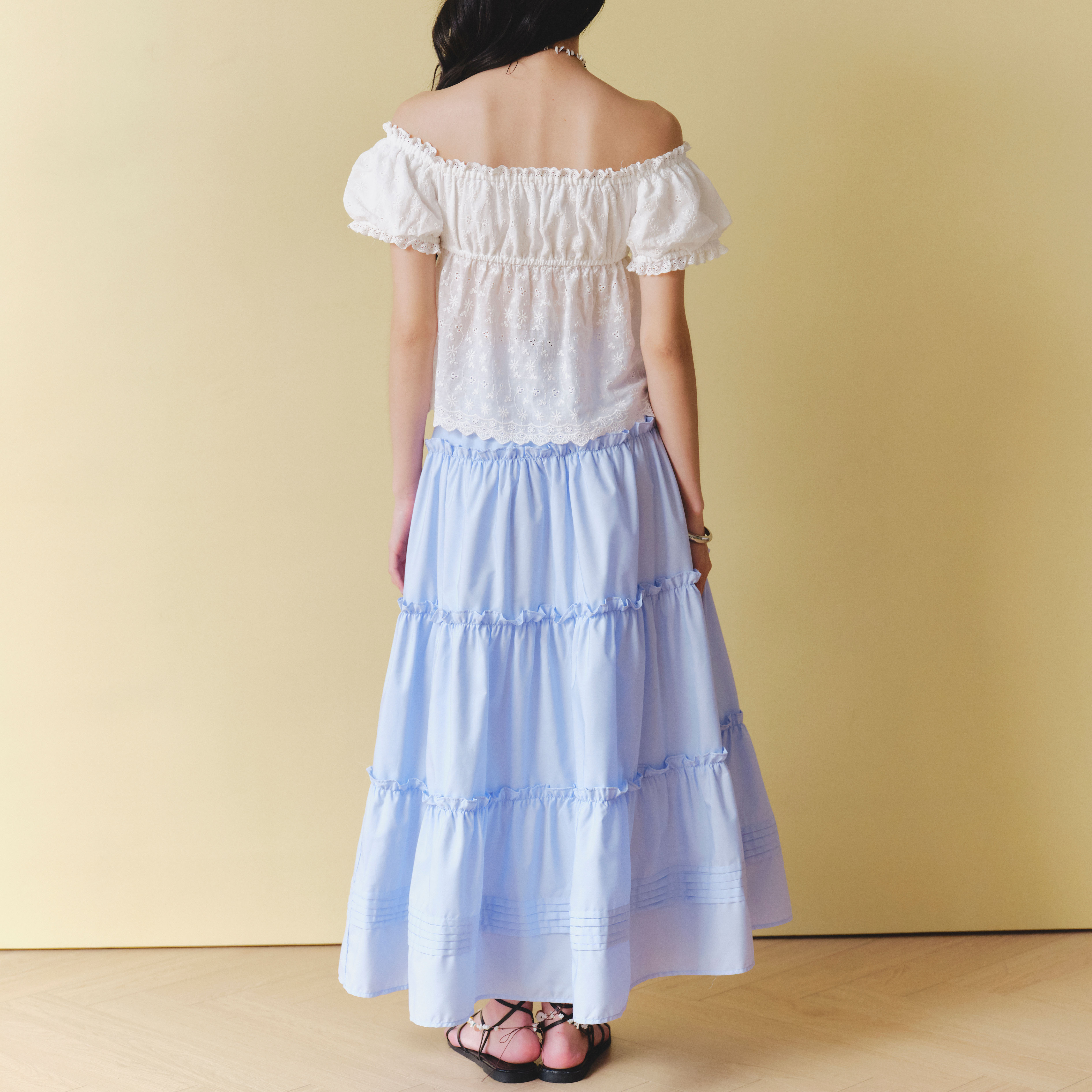 CHI TIẾT SẢN PHẨM - Sản phẩm : Chân váy dài chân chất vải cotton thêu có size dành cho nữ Gabrielle Miều Est.2013 - Chất liệu : Cotton Thêu - Màu sắc : TRẮNG
