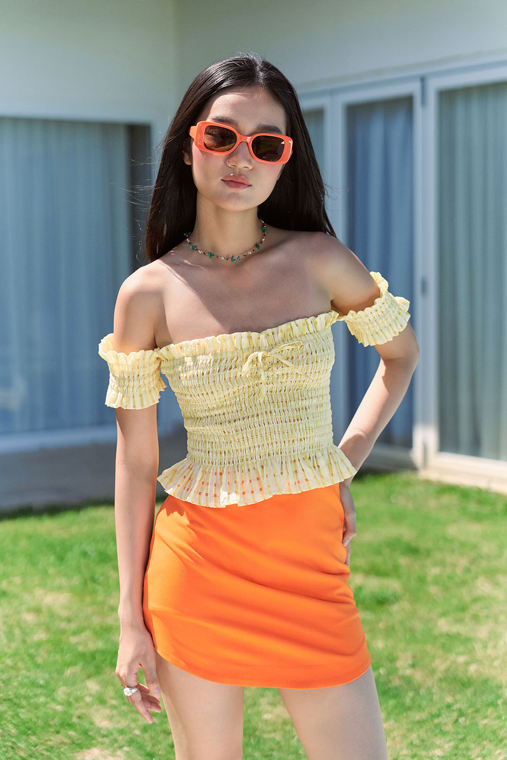 ✨DOTTIE - Chân váy ngắn vạt tròn nữ cam S0127
