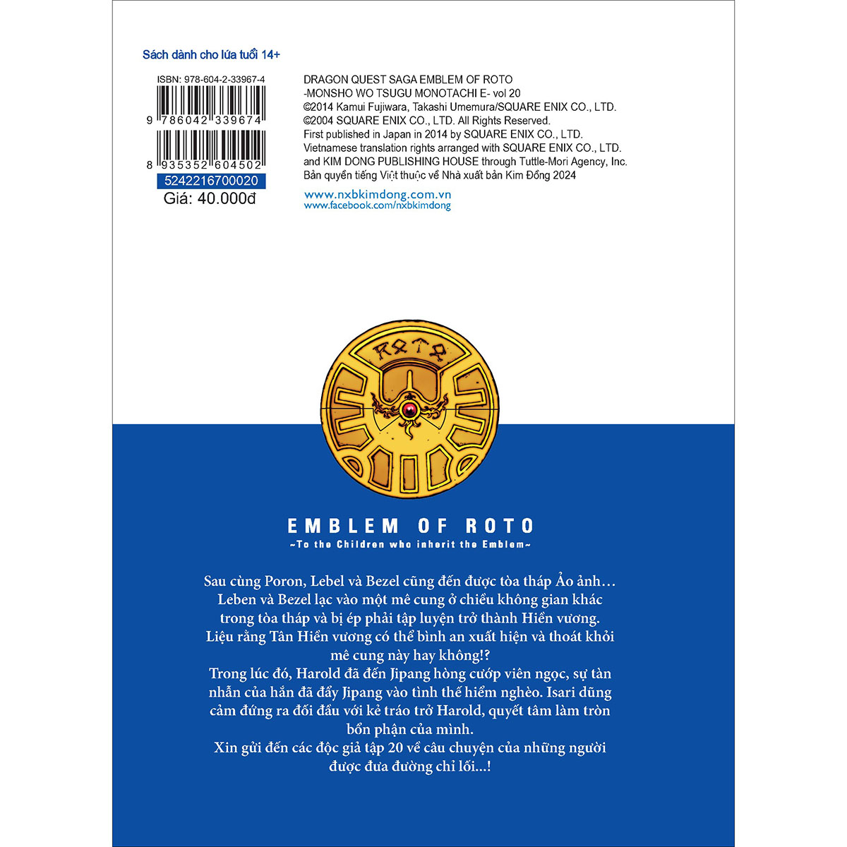 Mua tại TiktokSau cùng Poron, Lebel và Bezel cũng đến được tòa tháp Ảo ảnh… Leben và Bezel lạc vào một mê cung ở chiều không gian khác trong tòa tháp và bị ép phải tập luyện trở thành Hiền vương. Liệu rằng Tân Hiền vương có thể bình an xuất hiện và thoát khỏi mê cung này hay không!? Trong lúc đó, Harold đã đến Jipang hòng cướp viên ngọc, sự tàn nhẫn của hắn đã đẩy Jipang vào tình thế hiểm nghèo. Isari dũng cảm đứng ra đối đầu với kẻ tráo trở Harold, quyết tâm làm tròn bổn phận của mình. Xin gửi đến các độc giả tập 20 về câu chuyện của những người được đưa đường chỉ lố!
