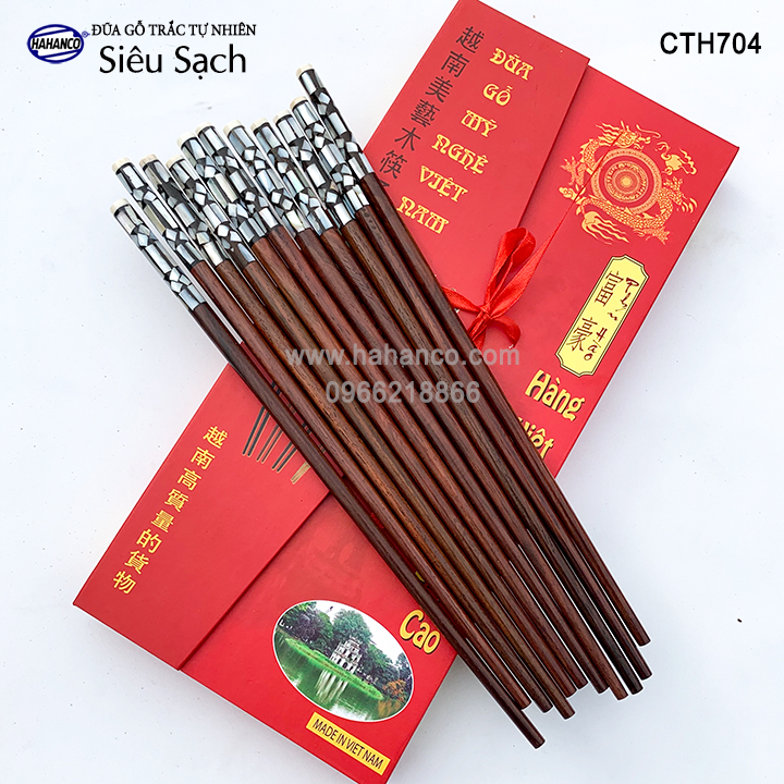 Đũa gỗ Trắc đầu khảm ốc bào ngư Úc (10 đôi/hộp) đũa sạch - CTH708 - HAHANCO - LH: 0966218866 #SHORTS