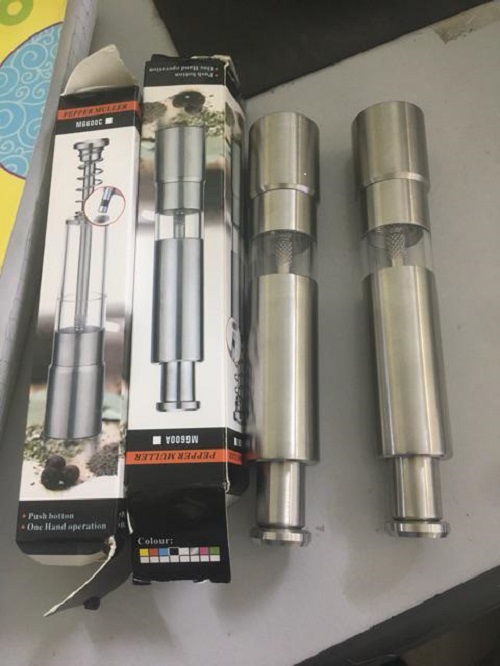 Bộ Dụng Cụ Máy Xay Tiêu, Gia Vị Mini Pepper Muller Chất Liệu Hợp Kim Inox 304 Không Gỉ Dùng 4 Pin AA