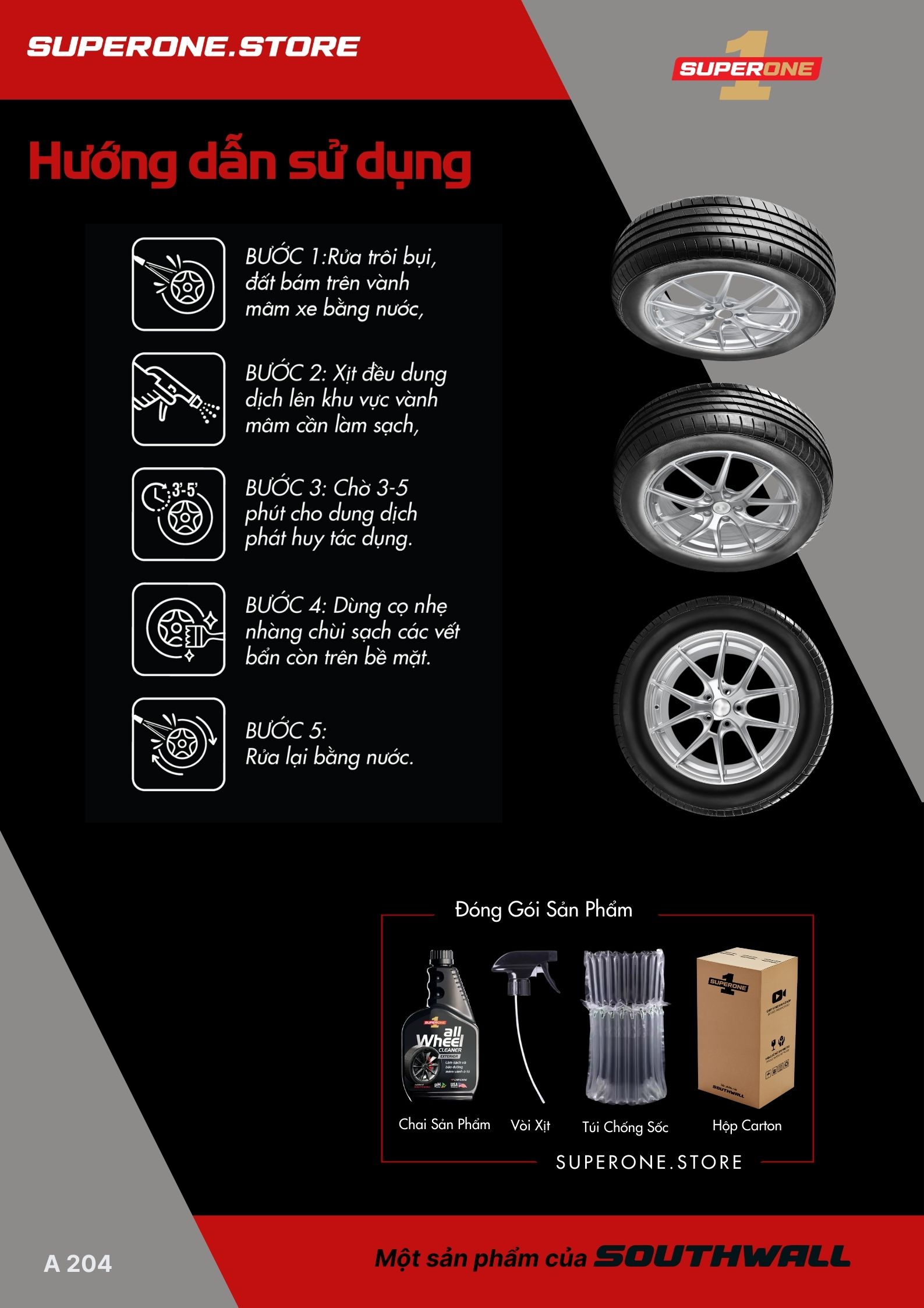 ✨Dung Dịch Làm Sạch Bảo Dưỡng Mâm Vành Ô Tô SUPERONE All Wheel Cleaner - Exterior SOUTHWALL A204