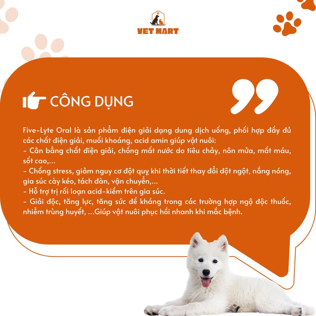 ✨DUNG DỊCH UỐNG SIÊU ĐIỆN GIẢI, CHỐNG MẤT NƯỚC DO SỐT, TIÊU CHẢY CHO GIA SÚC, GIA CẦM Five-Lyte Oral
