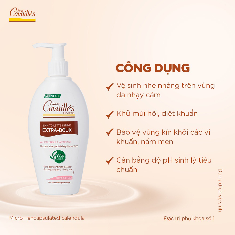 Mua tại TiktokDung dịch vệ sinh phụ nữ Roge Cavailles Extra-Doux chiết xuất từ tinh chất Cúc vạn thọ giúp làm sạch và làm dịu làn da vùng kín