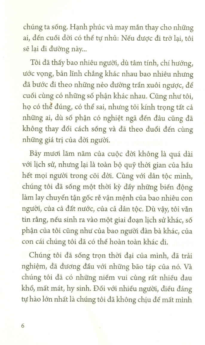 “Một người có thể sống cả đời theo cách mình thích là chuyện vô cùng khó khăn. Chúng ta không giây phút nào không bị thế giới bên ngoài chỉ trỏ, lâu dần sẽ quên