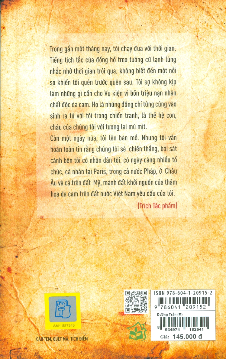 Tôi thấy cần phải viết một cuốn sách về đời mình. Viết để ghi lại những năm tháng đã qua, không tiếc nuối quá khứ, để sống thanh thản những năm tháng Bà Trần Tố Nga, người đứng tên kiện các công ty hóa chất Mỹ với tư cách là nạn nhân da cam, bà viết để khẳng định rằng trong tất cả những cuộc chiến đấu và công việc đã trải qua, tôi luôn theo đuổi một mục tiêu: Hạnh phúc của những người khổ hơn tôi, Công lý cho nhân dân tôi, Hòa bình và Hữu nghị cho tất cả. Đó cũng là tất cả những gì ông bà, cha mẹ đã để lại cho tôi. Đường Trần được khởi đầu trong một chiều mưa thu Paris như vậy.