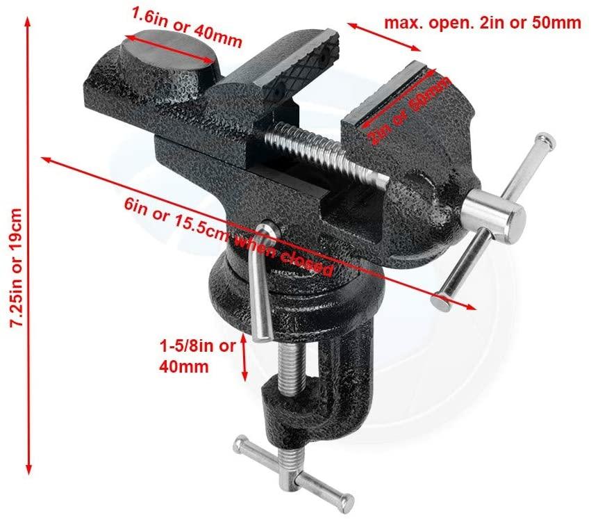 - Thiết kế ê tô xoay 360 độ 2 inch/50mm Tolsen 10107 có nhiều điểm nổi bật Ê tô xoay 360 độ 2 inch/50mm Tolsen 10107 có thiết kế nhỏ gọn, vừa vặn, không chiếm nhiều diện tích khi mang theo sử dụng, có thể bảo quản, cất giữ một cách dễ dàng mà không lo bị hư hỏng. Tay quay còn được thiết kế chống trượt nên sẽ đảm bảo an toàn cho bạn kể cả khi bị ra mồ hôi tay hay tay bạn đang bị dính dầu nhớt trong lúc làm việc. Sản phẩm được tích hợp chân đế có thể kẹp bàn, và có thể xoay theo ý muốn của người dùng. Ê tô xoay 360 độ 2 inch/50mm Tolsen 10107 được được đúc nguyên khối từ hợp kim thép nên có độ rắn chắc tối ưu, chịu nhiệt tốt, không bị biến dạng khi bị lực tác động mạnh giúp yên tâm sử dụng sản phẩm trong một thời gian dài mà không lo các vấn đề hư hỏng thường gặp như các loại ê tô thông thường khác. Ngoài ra, sản phẩm sở hữu cho mình độ chống gỉ sét dù tiếp xúc thường xuyên với điều kiện ẩm ướt hay bất kì thời tiết khắc nghiệt nào. Ê tô xoay 360 độ được tích hợp mâm xoay linh hoạt cùng chân đế chắc chắn, giúp tạo sự cân bằng và an toàn khi giữ, kẹp đồ vật ở nhiều góc độ. Sản phẩm chuyên dùng để giữ các chi tiết nhỏ một cách an toàn để cưa, đục, giũa, đánh bóng, khoan, doa và ven ren, thích hợp sử dụng trong các ngành cơ khí, sửa chữ