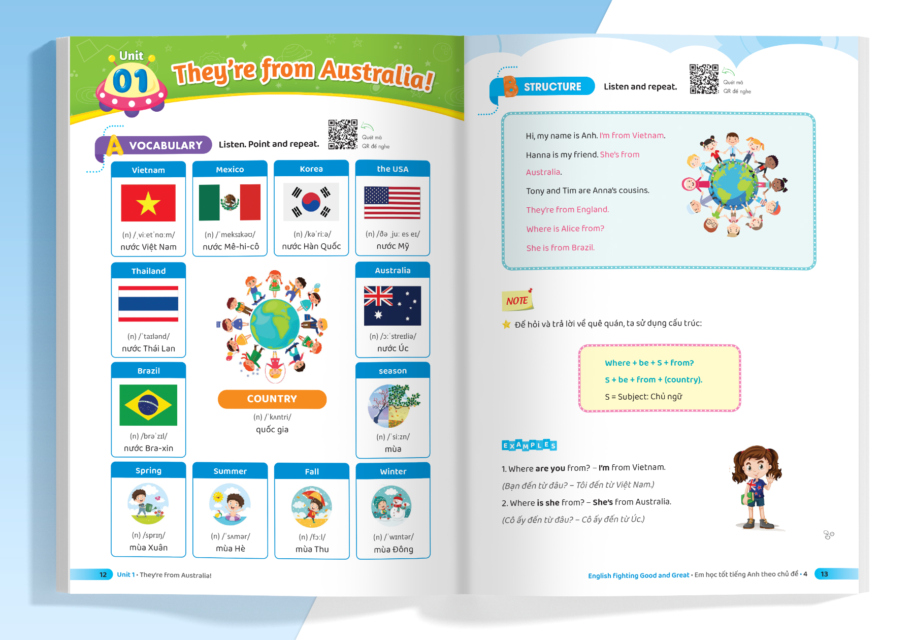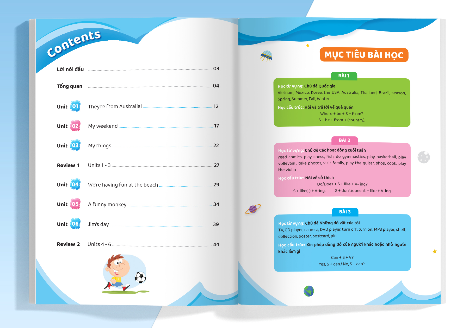 - Thiết kế hình ảnh minh họa sinh động Các em được học từ vựng theo chủ đề qua hình ảnh sinh động, làm quen ngữ pháp qua bài đọc và các cấu trúc câu.