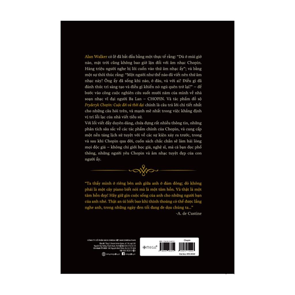 Dựa trên mười năm nghiên cứu và một kho lưu trữ lớn các nguồn chính nằm trong các kho lưu trữ ở Warsaw, Paris, London, New York và Washington, DC, cuốn sách Fryderyk Chopin: A Life and Times đồ sộ của Alan Walker là cuốn tiểu sử toàn diện nhất về nhà soạn nhạc người Ba Lan vĩ đại. Có thể coi tác phẩm của Walker là một cuốn tiểu sử hiệu đính, nhằm xóa tan nhiều huyền thoại và truyền thuyết vẫn tiếp tục bao quanh Chopin. Cuốn sách là một cái nhìn sâu sắc về cuộc sống đầy kịch tính của nhà soạn nhạc; tập trung đặc biệt là thời thơ ấu và tuổi trẻ của Chopin ở Ba Lan, được đưa vào phù hợp với những phát hiện học thuật mới nhất được đưa vào một cách phù hợp, cũng như cuộc sống lãng mạn của Chopin với George Sand, người mà ông đã sống cùng trong chín năm.