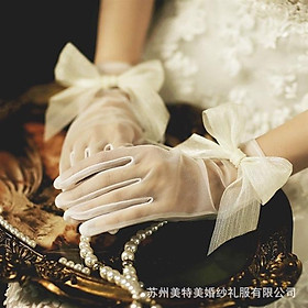 Găng tay cô dâu vải voan đính nơ điệu đà mẫu mới 12-2022 Giangpkc