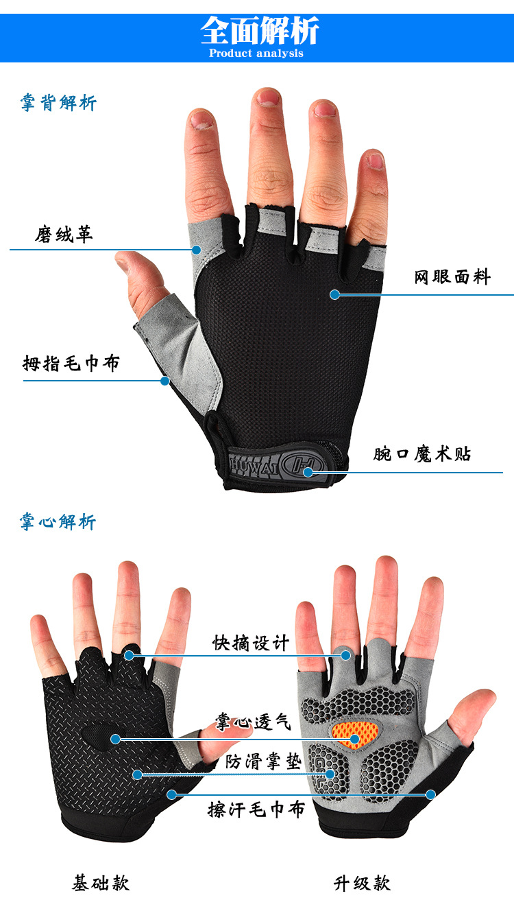 -Găng tay hở ngón thể thao , cho nam và nữ , họa tiết rằn ri , lớp cao su ở mu bàn tay bảo vệ đôi tay của bạn , chống trượt rất hợp