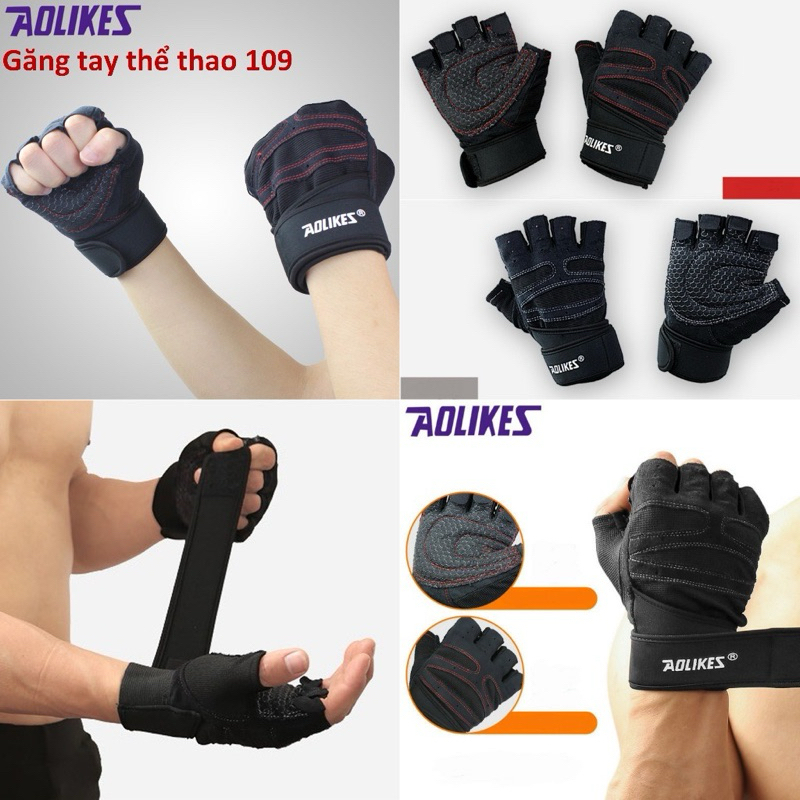 BÁN SỈ - Aolikes AL109 (1 đôi) Găng tay CÓ CUỐN CỔ TAY VÀ ĐỆM LÒNG chống trượt chuyên gym CHÍNH HÃNG