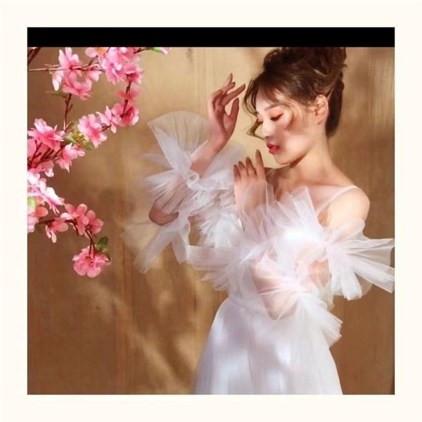 ✨Găng tay nữ vải voan xếp ly phồng dễ thương mẫu mới t10-2023 -Trắng kem