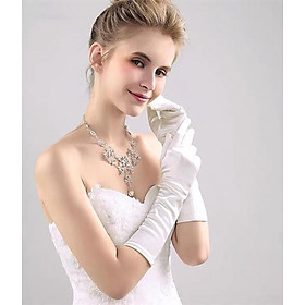 Găng tay Cô dâu và Dạ hội, đi tiệc, sự kiện, lễ hội, chụp ảnh. MS: 44365 Chất liệu: cotton lụa. Kiểu dáng: bao kín ngón, ôm tay. Đặc điểm: dáng dài, co giãn và
