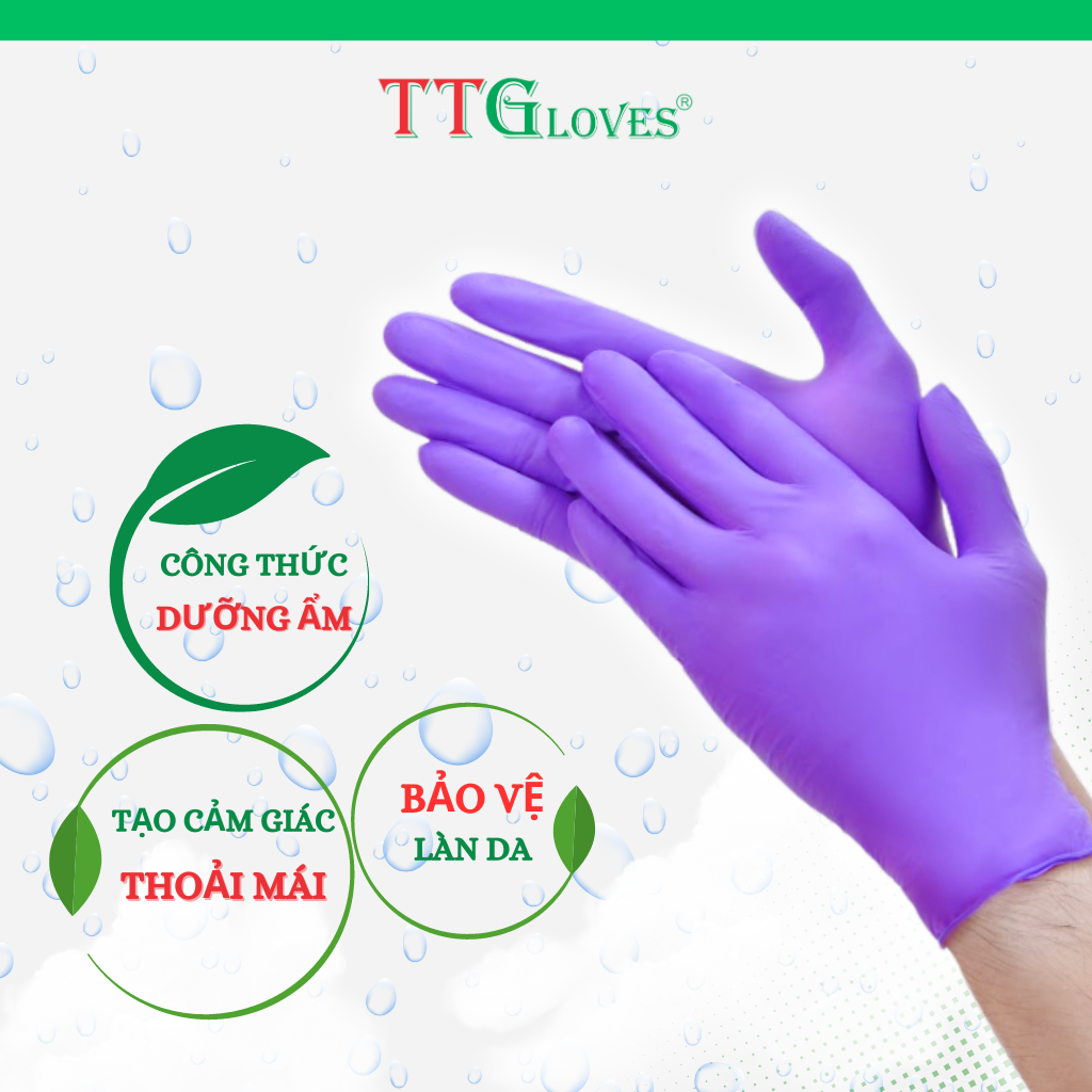 Găng Tay Cao Su Y Tế Size L Không Bột Nitrile TTGLOVES Màu Tím (100 Chiếc) TTGLoves là thương hiệu găng tay của công ty TNHH Sản Xuất & Thương Mại Toàn Tâm Gloves.