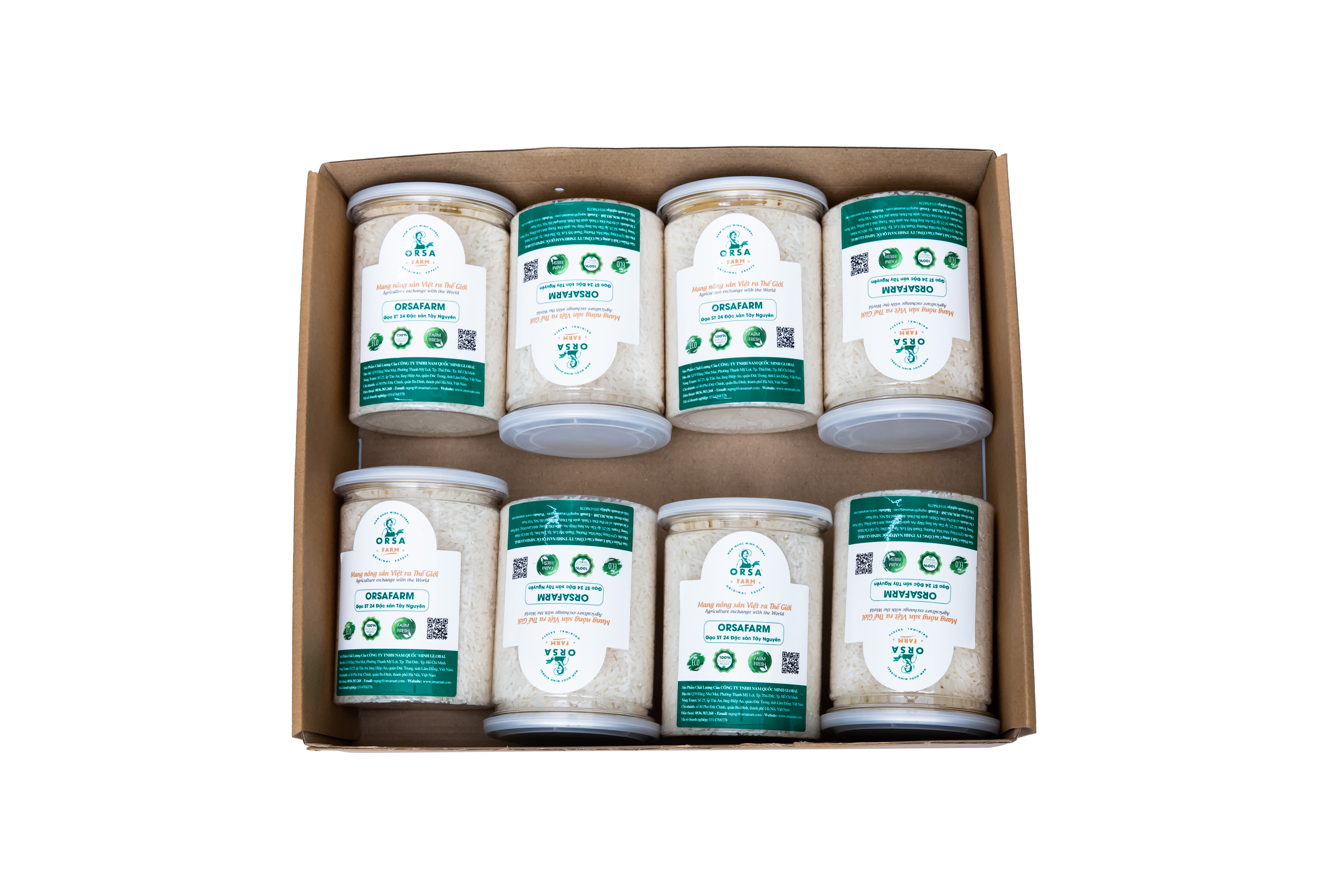 - Ngoài ra, có thể xay gạo OrSaFarm thành bột để chế biến những món ăn khác. ST24 OrSaFarm Buon Choah rice should be cooked between 1: 0.8 and 1: 1 water ratio. When left to cool, the OrSaFarm rice grains are still soft and supple, keeping the same fragrance as when they were still hot. Please do not rinse rice for too long as this will cause the loss of many nutrients in the newly cooked rice. Store your OrSaFarm rice in a dry, cool place avoiding moisture, strange odors, insects and pests. Please reseal tightly after opening OrSaFarm Rice bag or can + Hướng Dẫn Bảo Quản Gạo ORSAFARM : Bảo quản tốt nhất là dưới 15˚C, nơi thoáng mát, khô ráo. Với Nhiệt độ lạnh sẽ giữ được dưỡng chất và Vitamin của gạo. Gạo đựng trong hộp nhựa trong giúp quan sát được chất lượng gạo hướng hữu cơ bên trong, bao bì chuẩn VSATTP, và bảo quản tốt nhất dưỡng chất. Ngăn mát tủ lạnh hoặc nhiệt độ phòng máy lạnh là nơi lý tưởng để lưu trữ hiệu quả. ++ Bao bì sẵn có của ORSAFARM: Hộp nhựa trong 500 gram, 800gram, bao VSATTP 5kgs, 10kgs và 50kgs, (Hoặc theo yêu cầu Jumpo packing 500kgs, Jumpo packing 1.000kgs). Quy Cách Đóng Gói : túi nhựa PA (có tính chất dai, deo, trong rất an toàn cho sức khoẻ của Quý Khách). Túi và hộp nhựa chuẩn VSATTP. Túi có quai xách dễ dàng khi di chuyển.