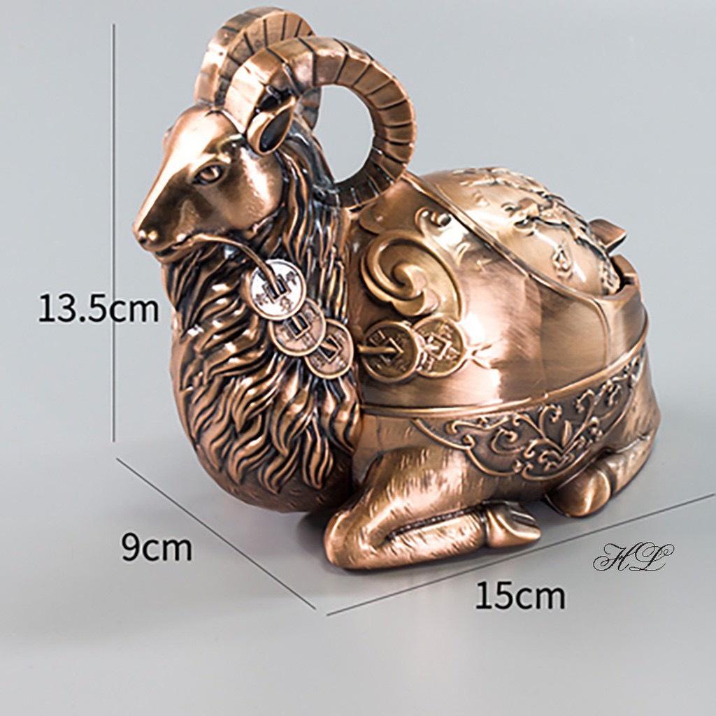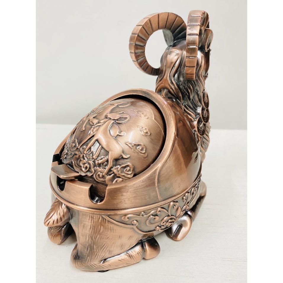 Gạt Tàn Thuốc bằng kim loại HÌNH DÊ Hoạ tiết chú DÊ ngộ nghĩnh Kích thước cao 15x9.13,5 cm Màu : Đồng đỏ