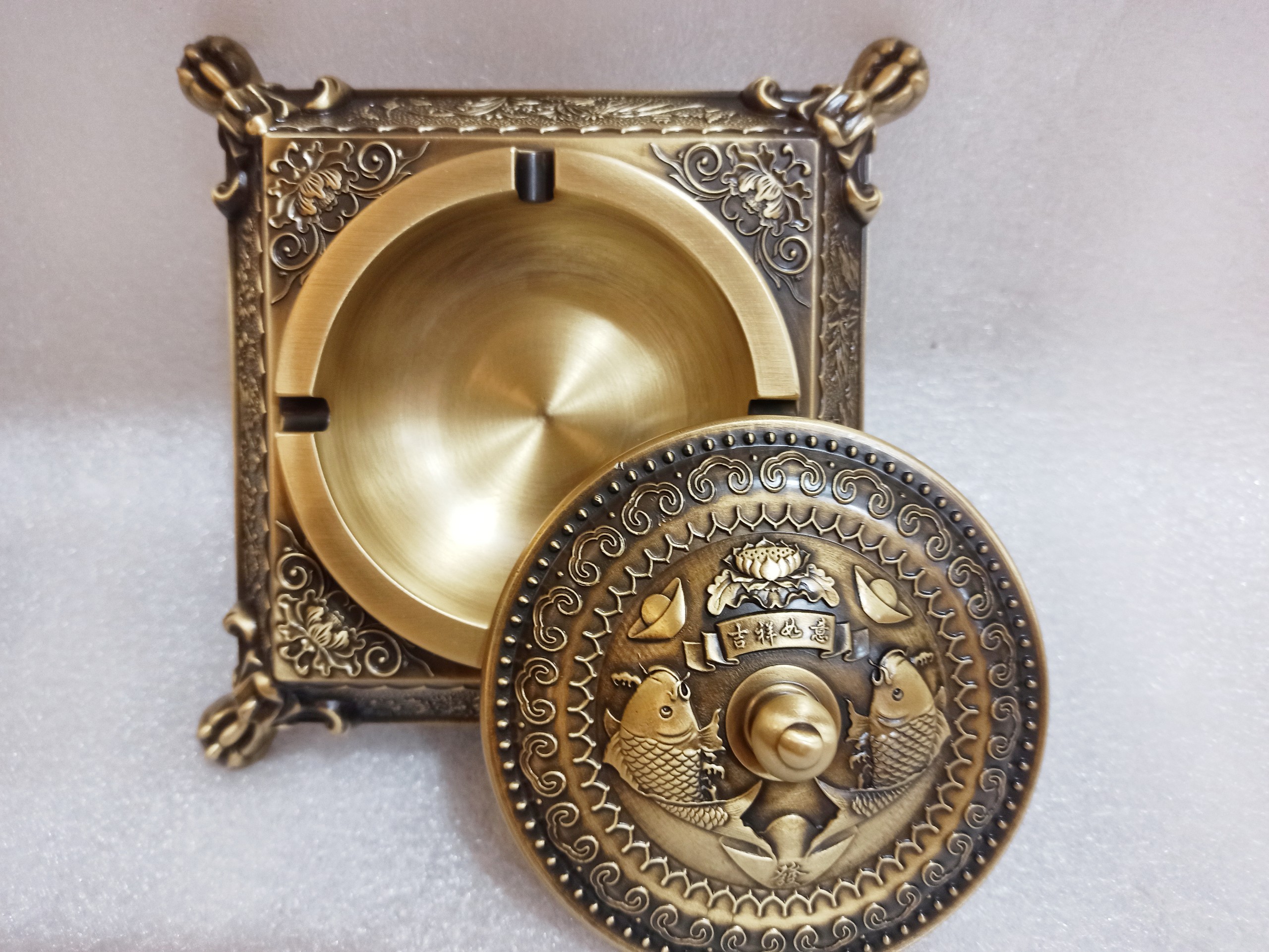 Gạt tàn thuốc lá bằng đồng hoa văn trống đồng đông sơn | Giá 1.800k - 0921400999
