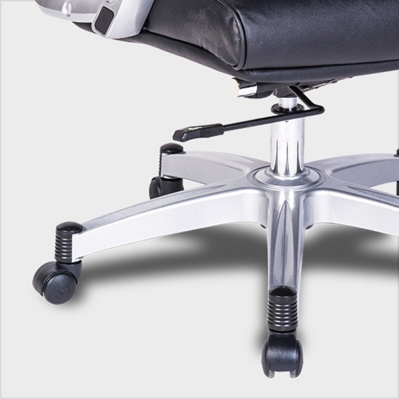 Ngoài ra, việc sử dụng chân tay ghế bằng nhựa cũng tạo sự đồng đều, các bộ phận này đều được sơn phủ màu nhũ bạc, tay bọc da, bát có chức năng điều chỉnh độ cao cần hơi và độ ngả của ghế.