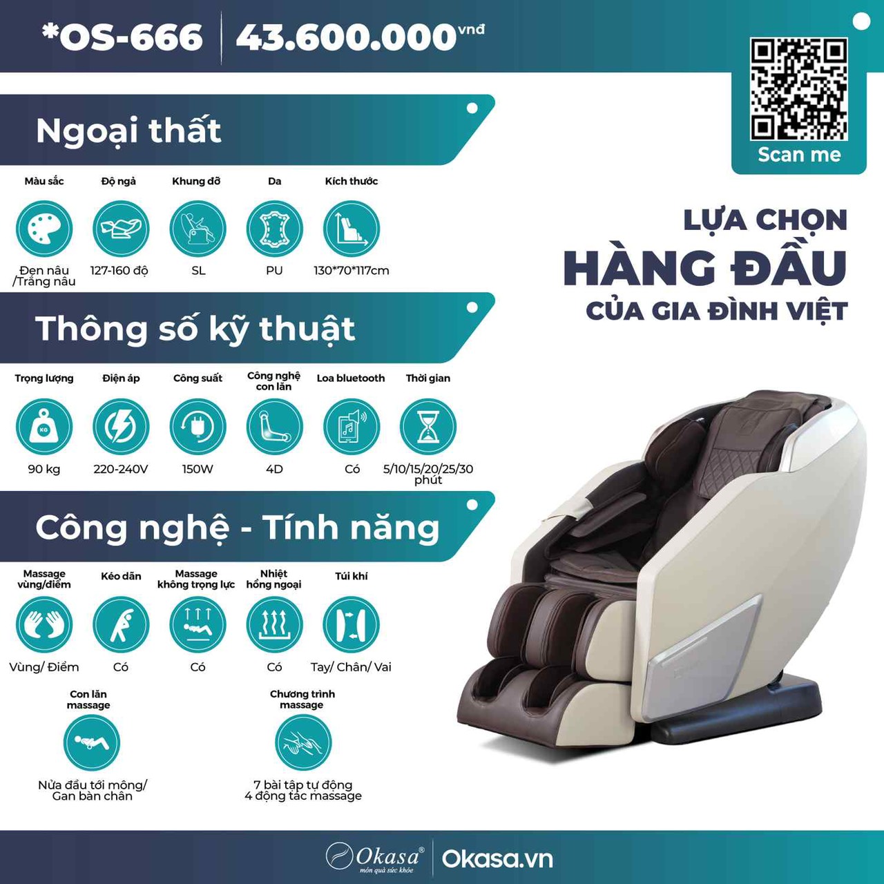 Ghế massage Okasa - OS 666 - Giới thiệu tính năng
