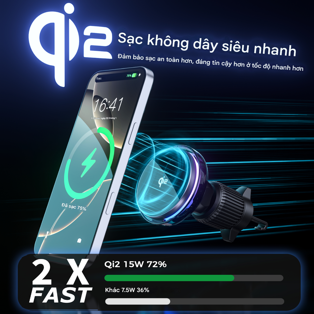 Dock sạc không dây Wi wu Q12 Wi-W029 1. Nhanh hơn gấp 2 lần! Sạc flash tốc độ tối đa 15W thực sự, Qi2 mạnh hơn, chỉ cần chạm và di chuyển 2. Thiết kế