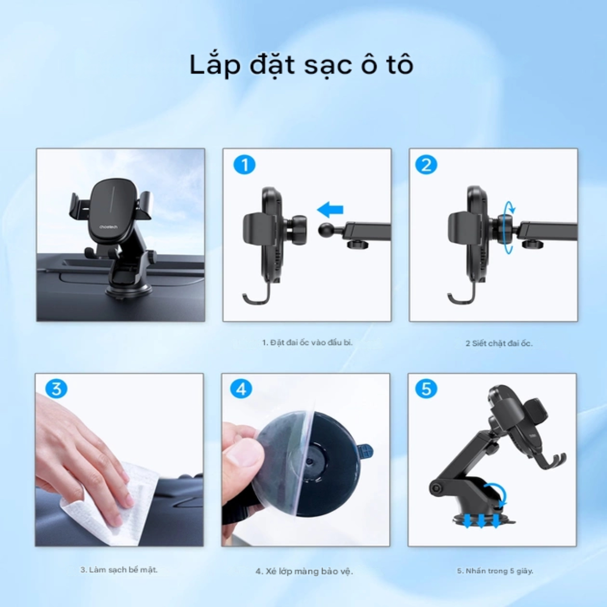 - Chứng nhận: ETL, RCM, FCC, CE, RoHS Thông tin chi tiết Sạc nhanh không dây 15W tiện lợi – Choetech T203-F hỗ trợ công suất sạc không dây lên tới 15W, tương thích với nhiều thiết bị hỗ trợ sạc nhanh chuẩn Qi. Bạn chỉ cần đặt điện thoại lên giá đỡ, sạc sẽ tự động kích hoạt mà không cần cắm dây rườm rà, rất tiện lợi khi lái xe. Thiết kế thông minh, chắc chắn – Sản phẩm được thiết kế để gắn vào lỗ thông hơi của ô tô với kẹp cố định chắc chắn, giúp giữ điện thoại ổn định ngay cả khi xe di chuyển trên địa hình gồ ghề. Với chất liệu cao cấp như ABS, PC và silicon, giá đỡ mang lại cảm giác chắc chắn, bền bỉ và không làm trầy xước điện thoại. Tự động nhận diện và giữ chặt điện thoại – Cơ chế tự động kẹp giữ thông minh giúp thiết bị tự động điều chỉnh phù hợp với kích thước điện thoại, mang lại sự tiện lợi và an toàn tối đa. Điện thoại của bạn sẽ luôn được giữ vững mà không lo rơi rớt. Kết nối dễ dàng, tương thích rộng – Giá đỡ sử dụng cổng USB-C với đầu vào 5-12V 2A, đi kèm cáp dài 1m, giúp dễ dàng kết nối với các nguồn điện trong xe. Sản phẩm tương thích với nhiều dòng smartphone hỗ trợ sạc không dây như iP, Sam-sung, Xiao-mi và nhiều thiết bị khác. Hình ảnh Giá đỡ điện thoại sạc không dây trên ô tô 15W Choetech T203-F (Hàng chính hãng)