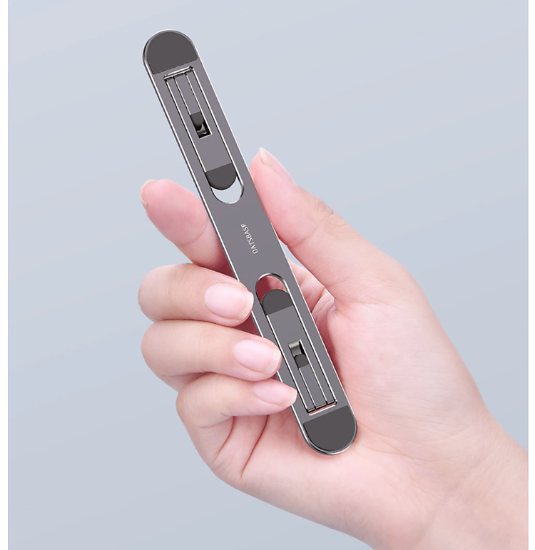 - Chất liệu hợp kim nhôm không gỉ, siêu vững, không gây kích ứng da - Thiết kế siêu mỏng, gọn, nhẹ, dán luôn ở mặt đáy của laptop, khi sử dụng chỉ cần gạt